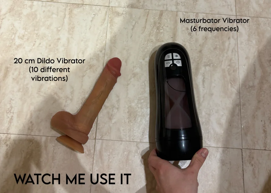 Come and watch me use this 20cm vibrator dick and the masturbator! 💦